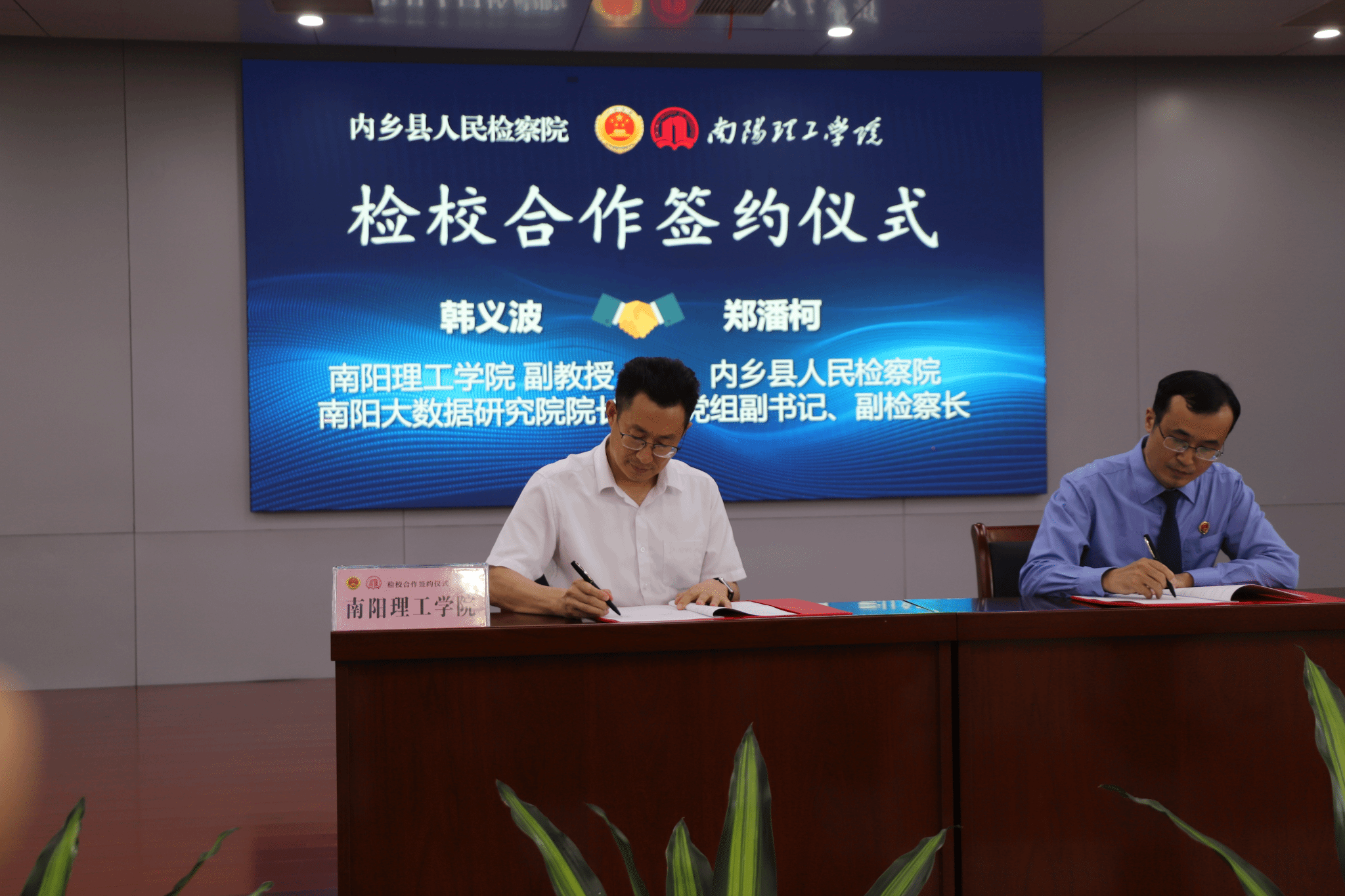 会上,内乡县人民检察院和南阳大数据研究院负责同志共同签订了《检校合作框架协议书》,并为南阳大数据研究院数字检察团队成员代表颁发了《数字检察协同研究中心》专家聘书。此举体现了双方前期数字检察理论研究与数字检察项目合作研发的初步成果,同时为双方后续深入合作提供了更坚实平台基础和业务场景资源。