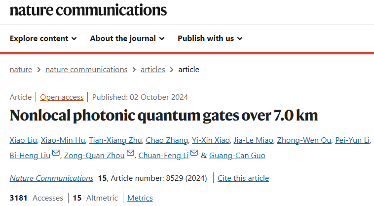 (摘自X. Liu, X.-M. Hu, T.-X. Zhu et al. Nonlocal photonic quantum gates over 7.0 km. Nat. Commun. 15, 8529 (2024). )